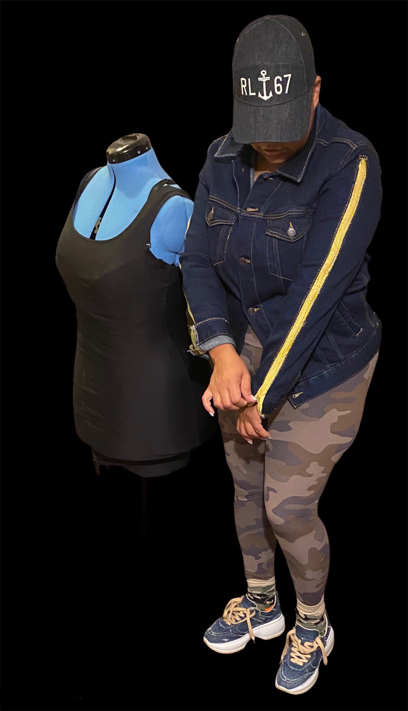 Denim jacket, zipper colors can be customized. Please put color of zipper in the notes when you order. Model has on a medium and she is a size 10. This is a custom item, all sales are final. Please allow up to 3 weeks for completion.